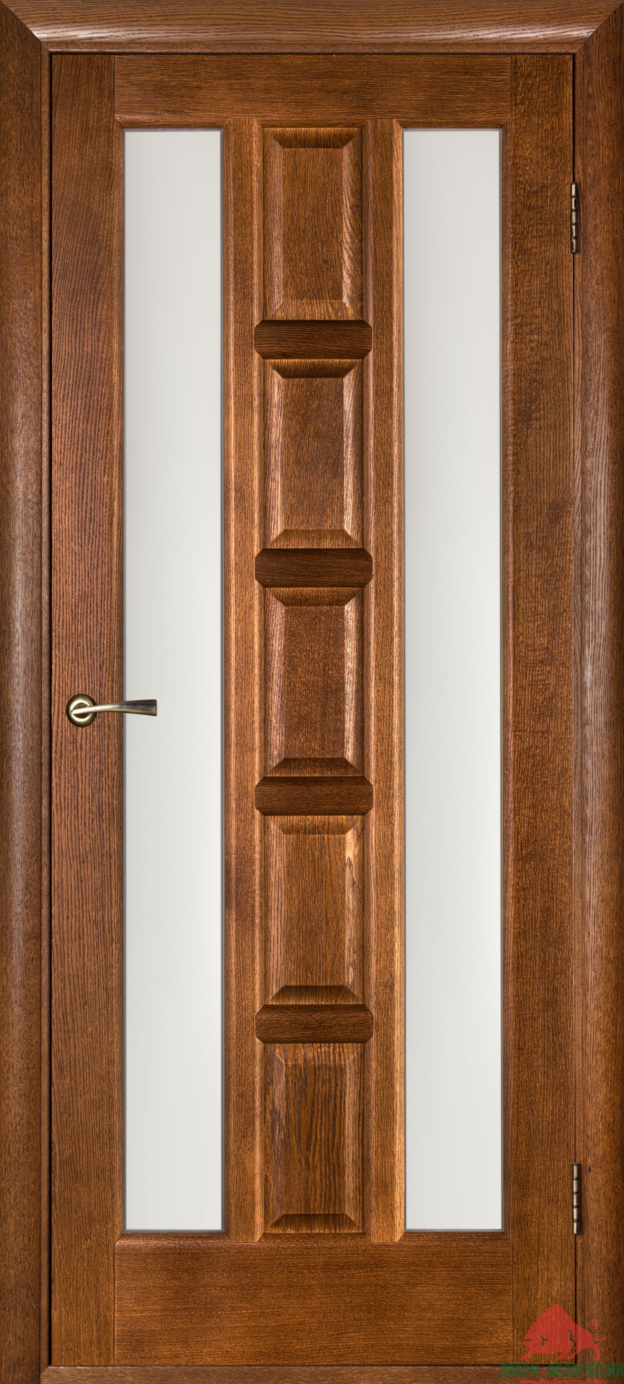 Эта модель из срощенного массива сосны, покрыта натуральным дубовым шпоном, филенки выполнены из МДФ. Поэтому она прочная, хорошо сохраняет геометрию, а также экологична, имеет благородную текстуру дуба.