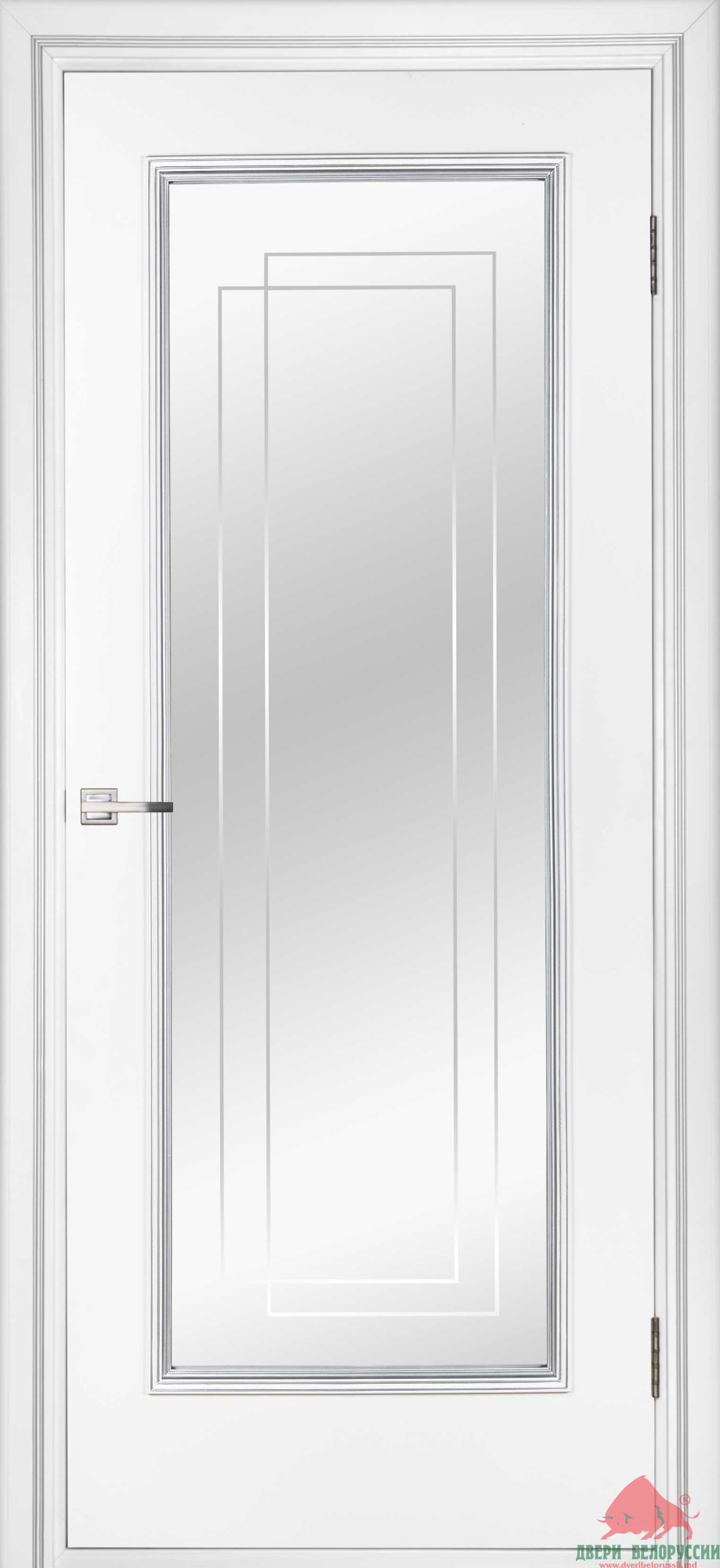Межкомнатная дверь Триумф белый лак ПО (с зеркальным триплексом)