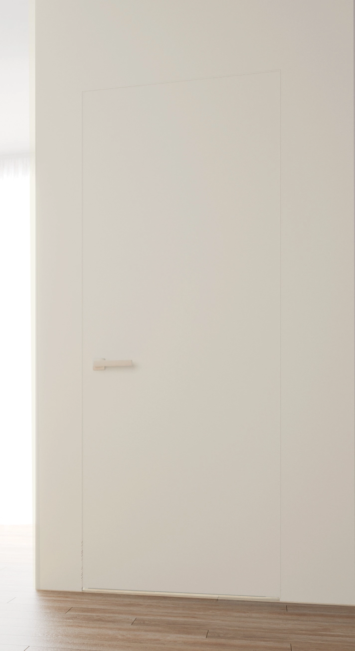Скрытый короб позволяет двери быть в одной плоскости со стеной.