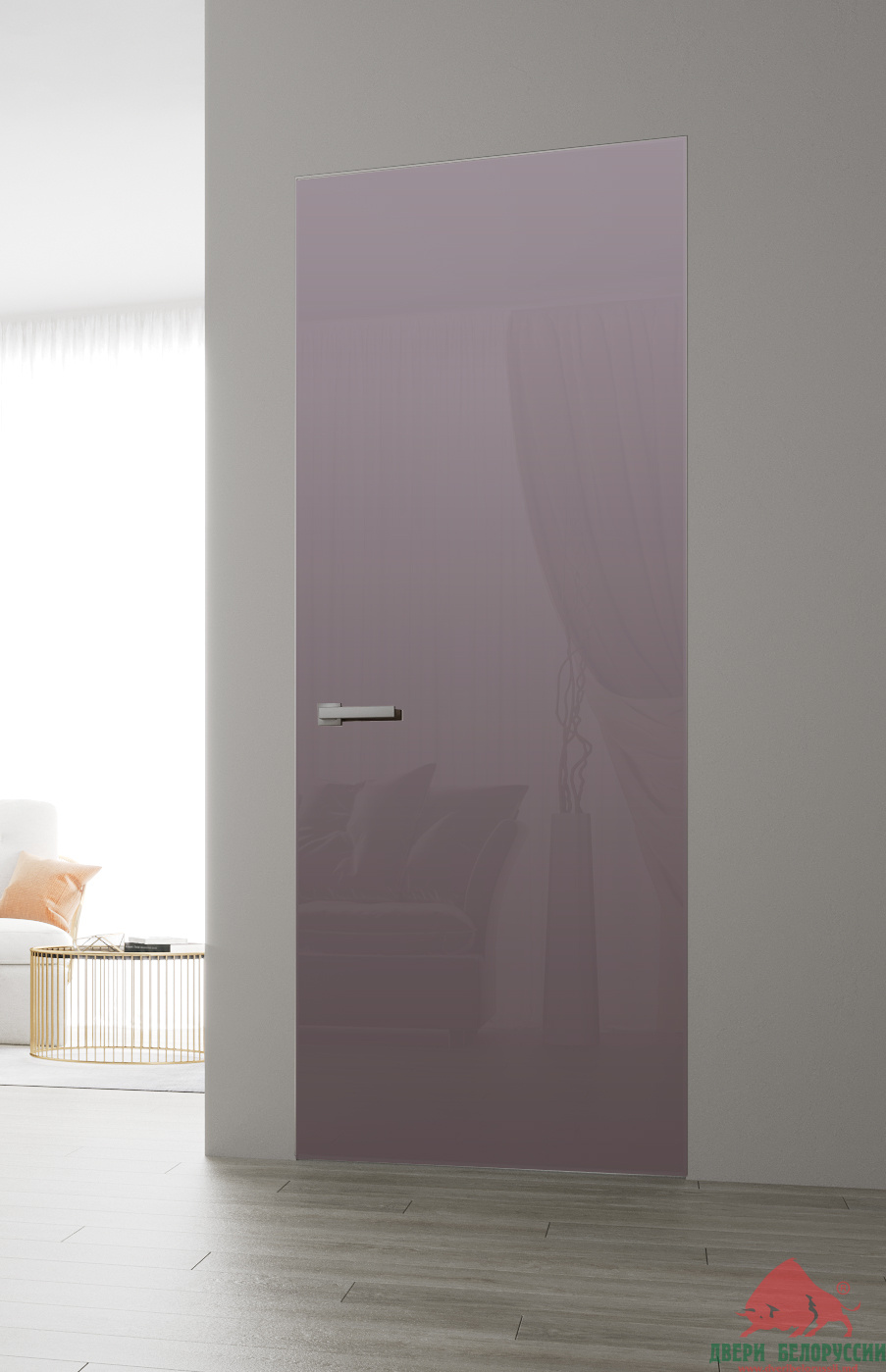 Скрытый короб позволяет двери быть в одной плоскости со стеной.