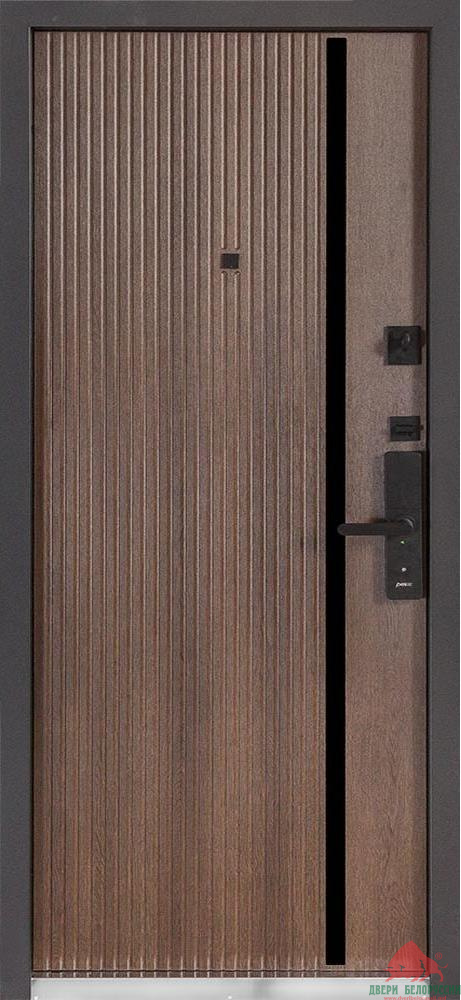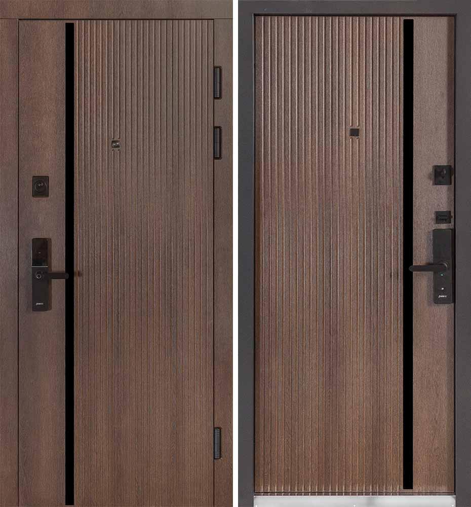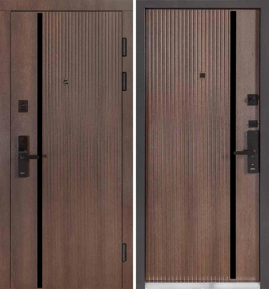 Внешние вертикальные вставки из композита черного цвета придают этим дверям современный вид. Пленка с вертикально структурой придает стиль и элегантность.