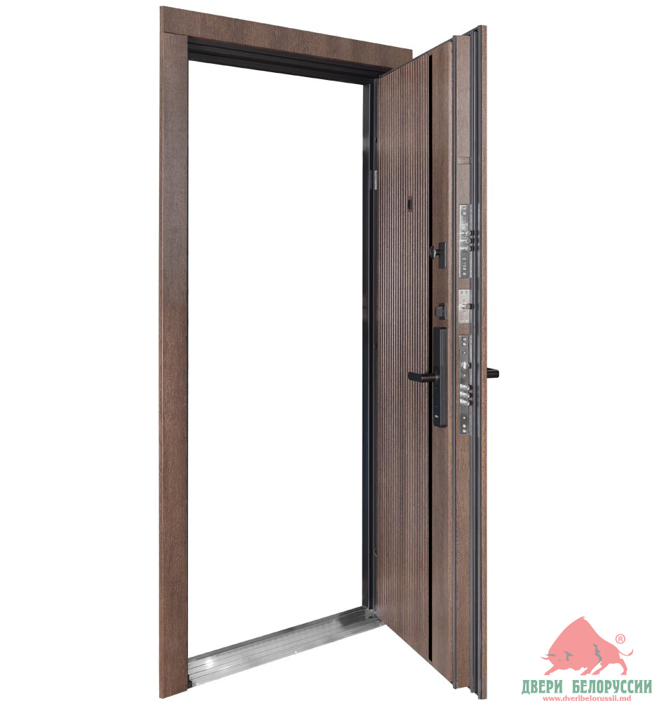 Толщина дверного полотна - 105 мм. Благодаря минеральной вате и фольгированному утеплителю, двери имеют высокий уровень тепло- и звукоизоляции.