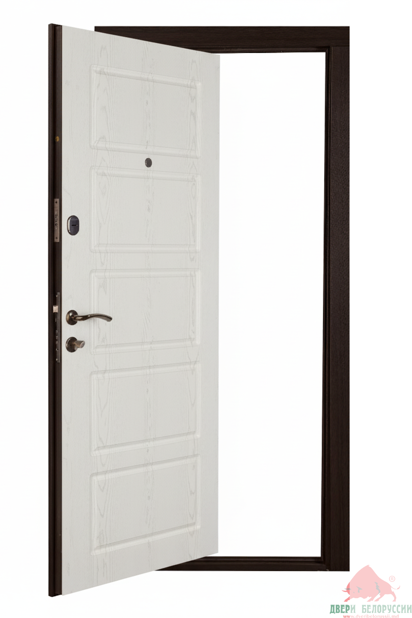 - Замковая система ТМ Двери Белоруссии: 2 замка ТМ Двери Белоруссии: верхний Бордер ЗВ8-8У/13 У2; нижний Бордер ЗВ4-31/55 У2, цилиндр AVERS ZM80-C-CR, броненакладка AVERS DP-80-C-CR