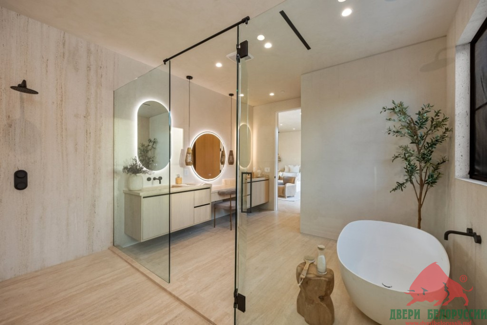 - Эстетика: Добавляет легкость и современность в ванную комнату.