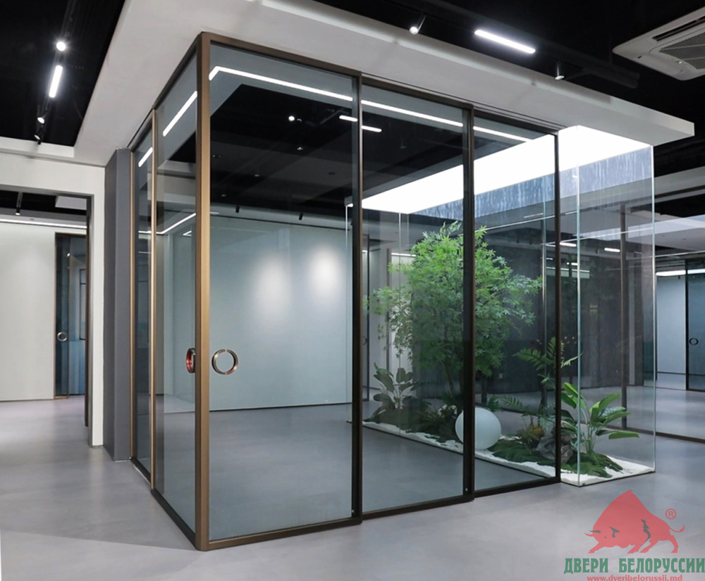 · Стеклянные перегородки пропускают естественный свет, что делает помещение более светлым и уютным.