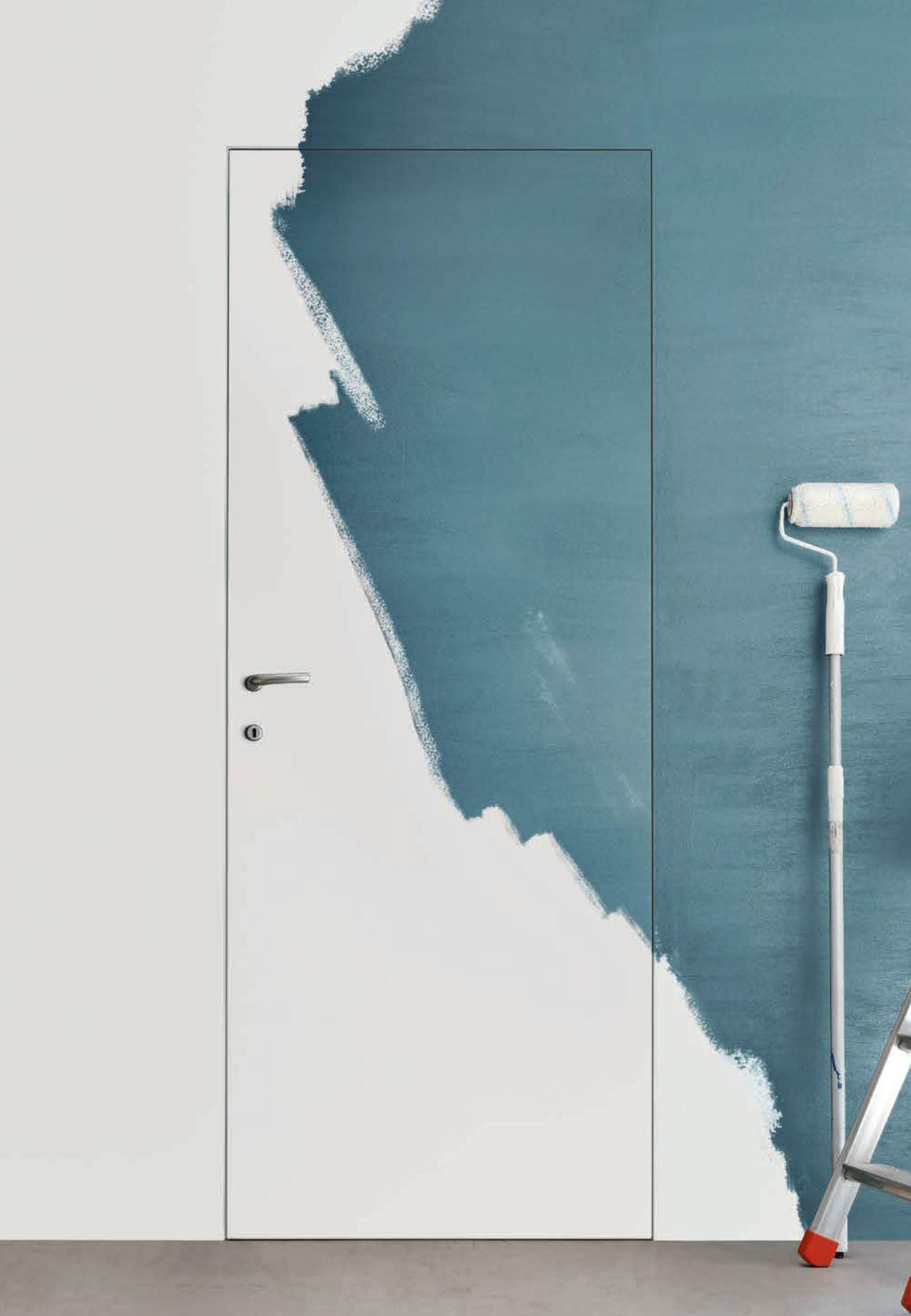 Cadrul ascuns permite ușii să fie la același nivel cu peretele.
