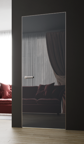 На него можно нанести различные рисунки или гравировку (пескоструй). Дверь может быть матовой или выполнена в разных цветах. Зеркала бывают матовые и глянцевые. Двери с отражающей поверхностью могут быть использованы в качестве межкомнатных, для шкафов, гардеробных, перегородок, в офисах, магазинах, кафе и т.д. Зеркальная дверь очень долго сохраняет изначальный вид и «не стареет».